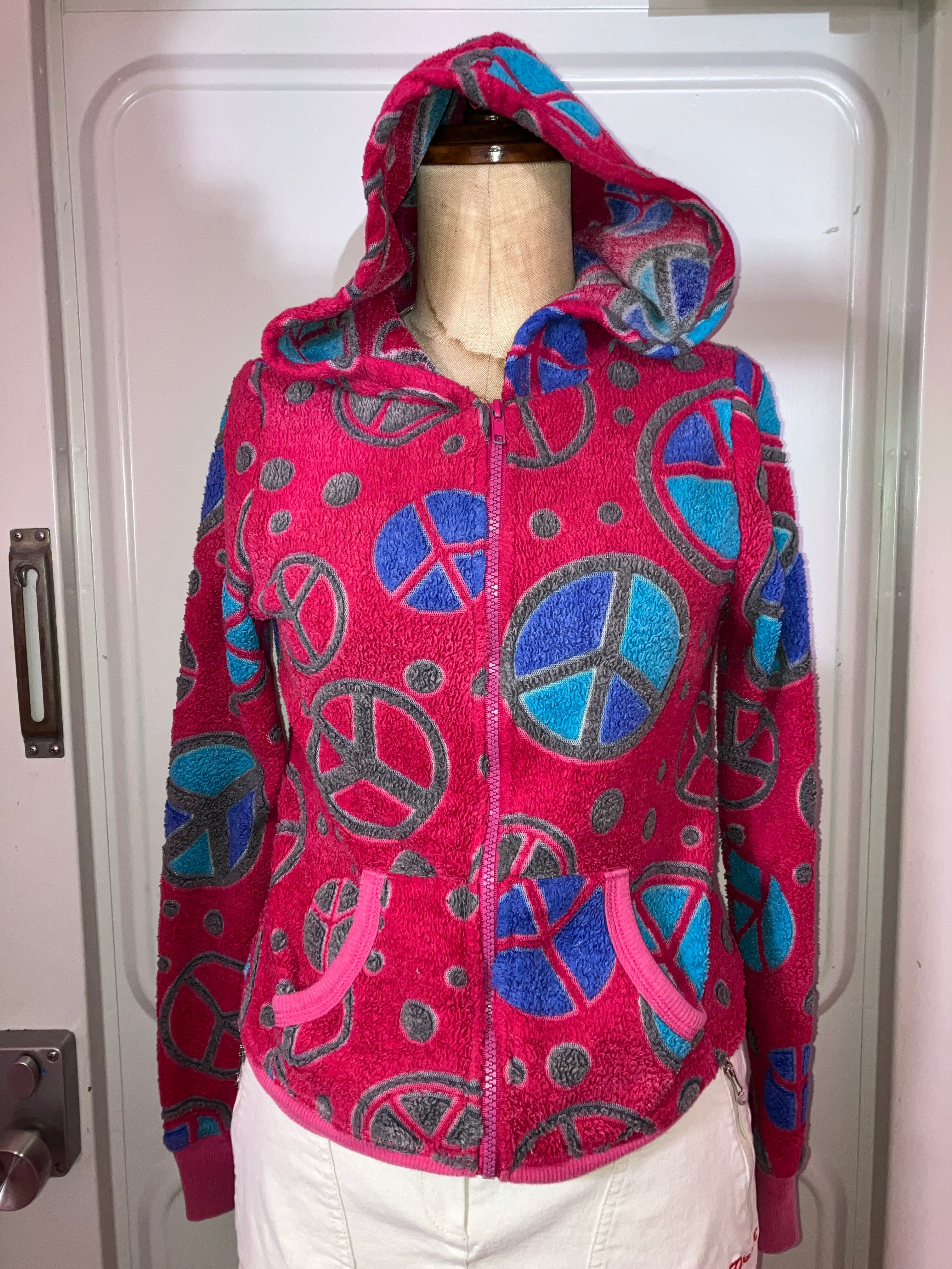 peace mark pink zip-up hoodie